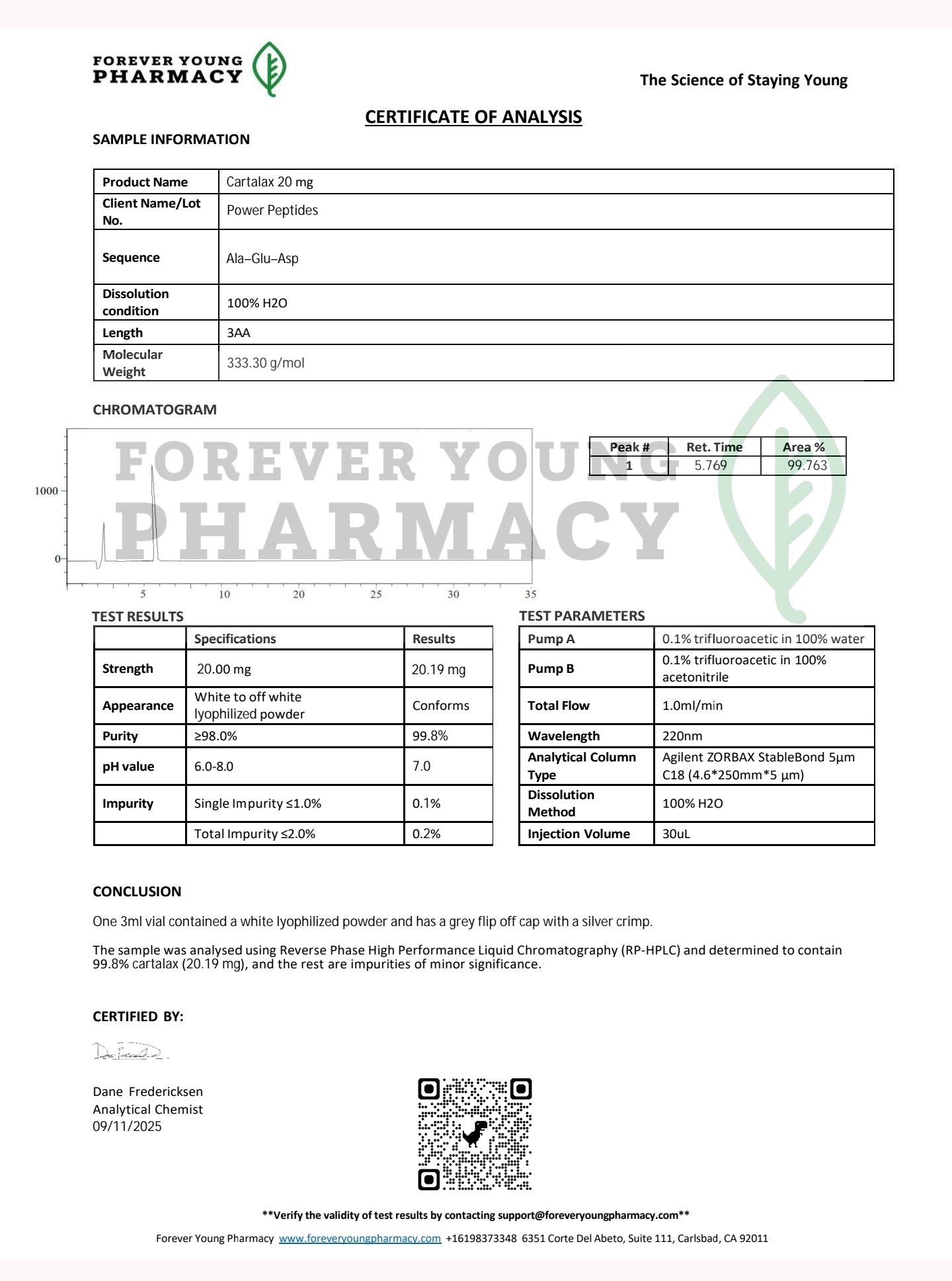 Cartalax is generally well-tolerated, with rare reports of mild gastrointestinal upset or temporary fatigue. As a non-hormonal peptide, it’s considered low-risk, but consult a healthcare provider before use, especially if pregnant, nursing, or on medications. It’s not intended for diagnostic or therapeutic use in humans per some disclaimers.